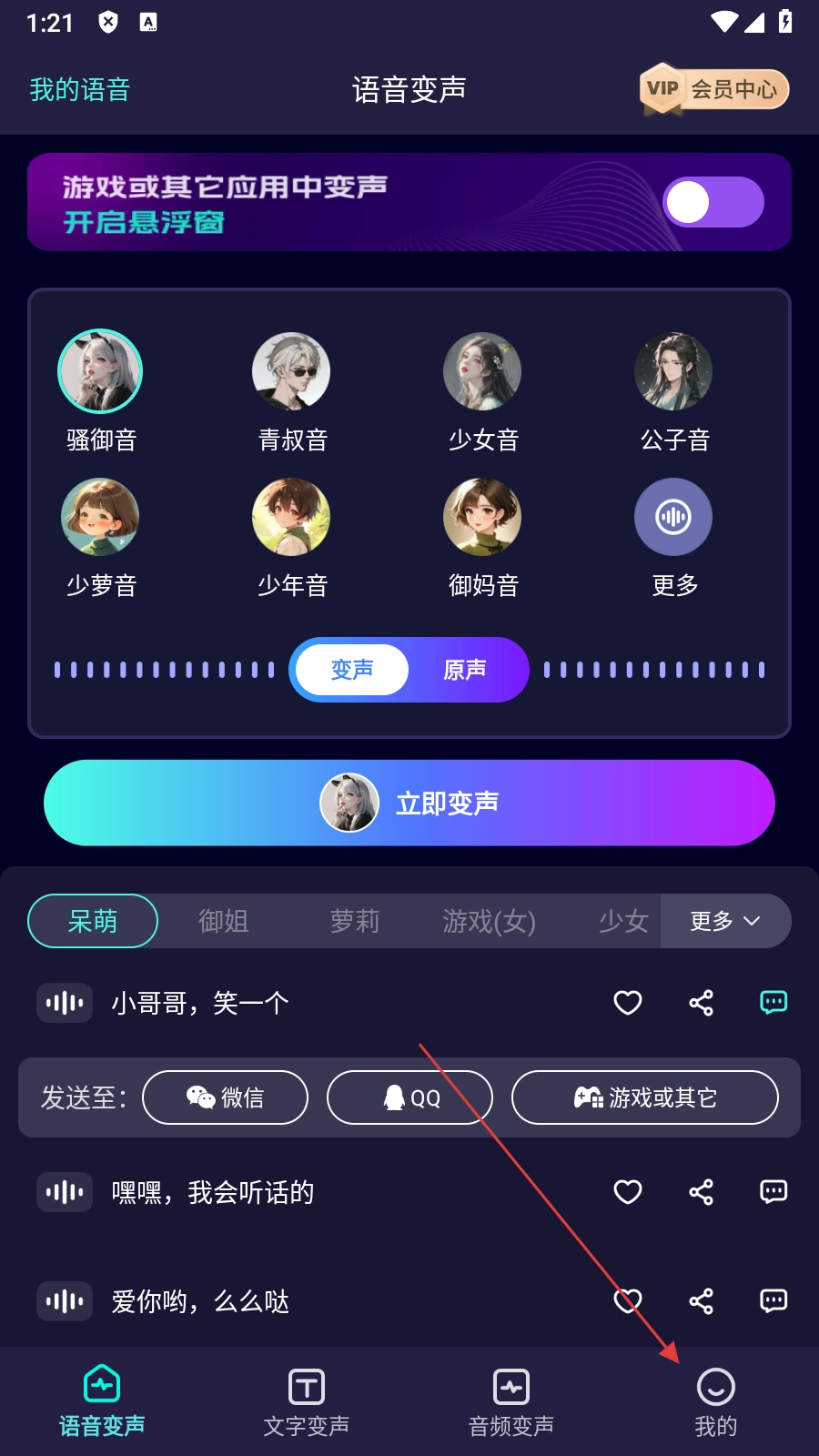 悬浮窗功能可以在微信、QQ等聊天软件以及各类游戏里轻松完成变声操作,而且使用起来很简单,让变声不再受场景约束,提升了使用时的灵活性与实用性。