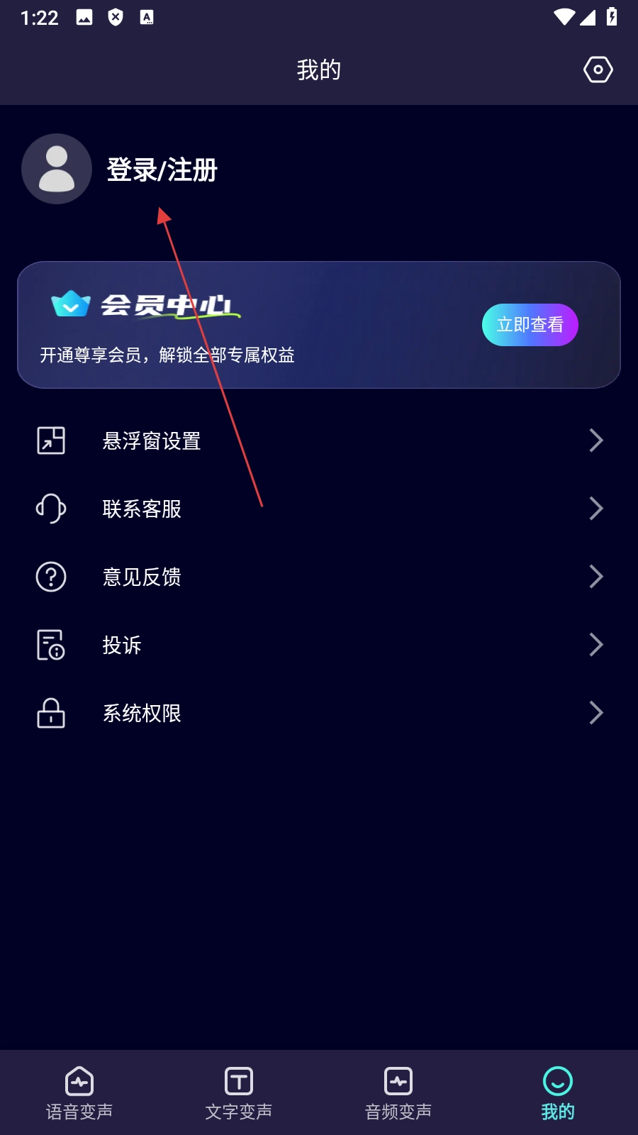 在个人中心页面点击【登录/注册】按钮,即可弹出账号登录的窗口。