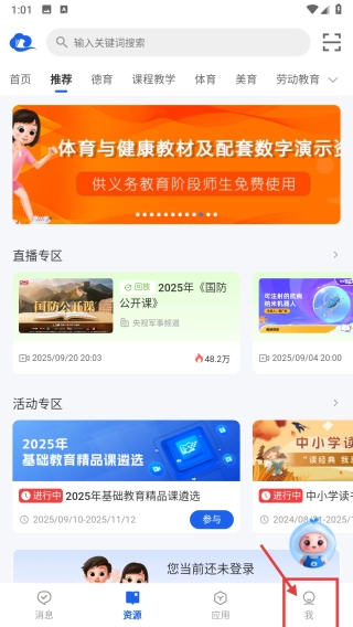 首先打开教育服务类平台的首页,接着点击页面底部的“我”选项,随后即可进入个人中心页面。