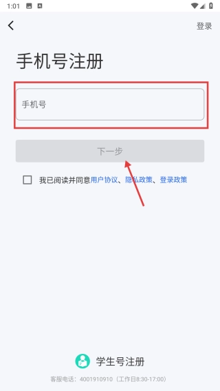 在注册方式选择页面,输入手机号完成注册操作。