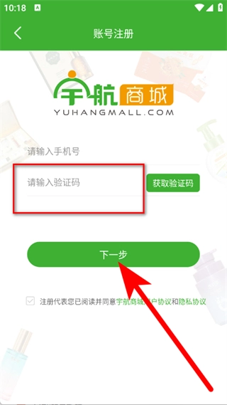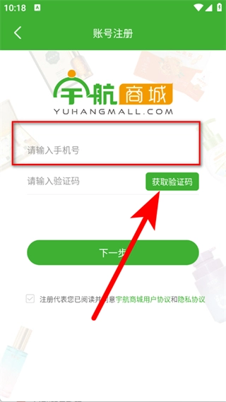 在注册页面,输入手机号码,点击获取验证码。