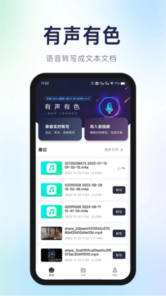 有声有色是一款高效的语音转文字工具,借助先进的语音识别技术,可将用户的语音内容迅速且精准地转化为文字,适用于会议记录、学习笔记、采访整理等各类场景。