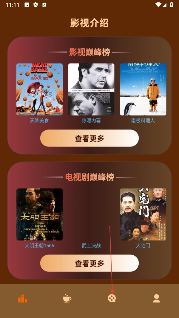 点击【底部影视图标】,进入影视介绍页面。