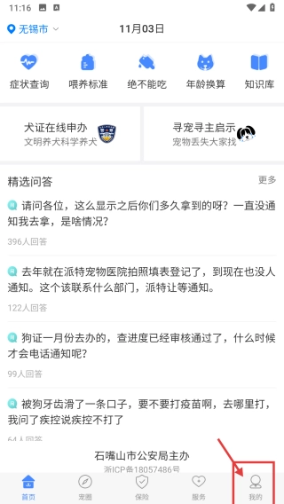 首先打开犬卫士的首页,接着点击页面底部的“我的”选项,这样就能进入到个人中心页面了。
