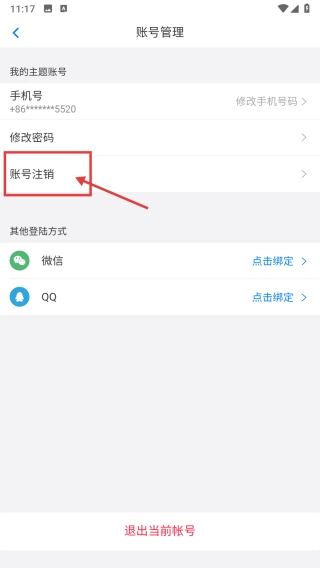 在账号管理界面,选择账号注销功能,跳转至注销须知页面。