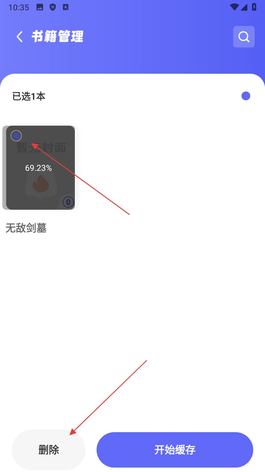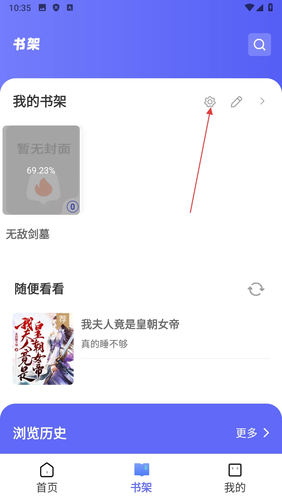在书架页面,点击【设置图标】,进入书籍管理页面。
