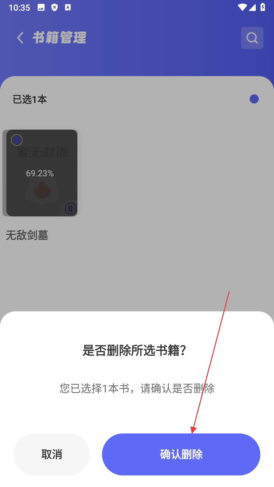 在删除确认弹窗中,点击【确认删除】按钮,就能完成书籍的删除操作。