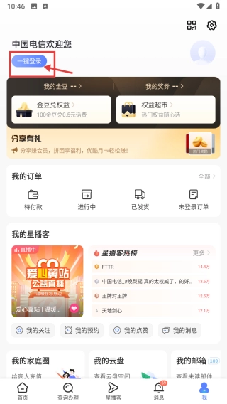 在个人中心页面,找到并点击“一键登录”选项,即可跳转至登录方式选择界面。