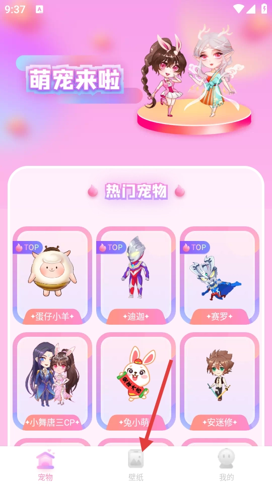 进入应用后,点击底部的【壁纸】选项,就能浏览各类壁纸的分类和具体内容了。