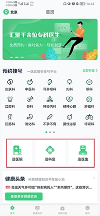支持选择医院或科室,选定合适的科室后就能查看推荐的医生。