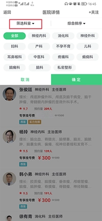 三、进入后,在筛选科室的选项里选定你要预约的科室,接着点击筛选结果里对应的医生。