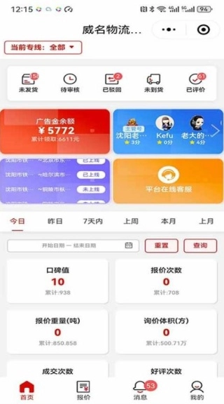 运费计算器物流端是专注于物流运输领域的服务平台,借助高效数据算法与精准匹配机制,助力货主提升日常查询专线、发送货物的效率。用户通过该平台,能够在线快速发货,高效匹配合适的物流公司,让运输过程更轻松、更快捷。