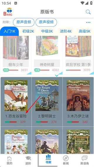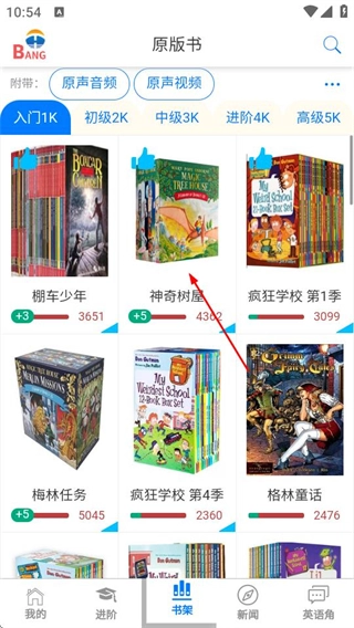 在书架页面,找到你喜欢的原版书(比如《神奇树屋》),点击它就能进入该书的分册列表页面。