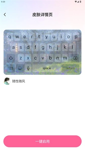 进入主题页面后,点击下方的【一键启用】按钮,即可成功更换手机键盘皮肤。