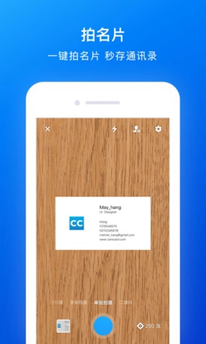 支持单张拍摄、多张连续拍摄、秘书代扫以及代扫功能,让堆积如山的名片处理起来轻松便捷。