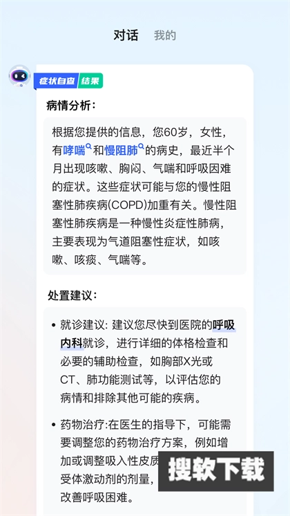 AI医生会依据你填写的具体情况,为你提供对应的问诊结果、用药治疗建议等内容。