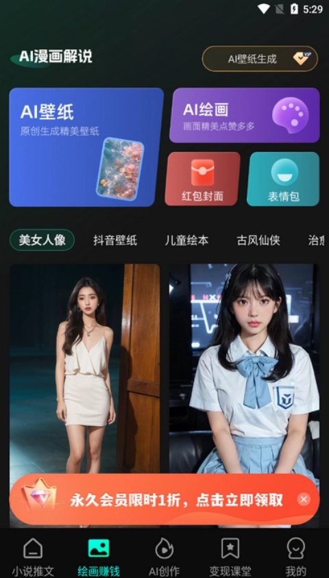 智能AI自动出图与成片功能:平台应用内的内容会持续更新迭代,借助智能AI技术能够自动生成图片并完成成片制作,既能确保产出的创作内容保持高品质水准,又能有效减少平台内容重复的风险,进而提升整体创作效率。