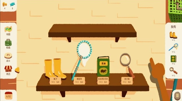 在公园里自由地探索,借助各式各样的道具来捕捉野生虫子,收集那些稀有的品种。2、通过训练和战斗的方式提升虫子的等级,解锁更强大的技能,让战斗策略的多样性得到增强。3、参加“夏日甲虫大战”挑战赛,和NPC或者其他玩家进行对战,争夺冠军的宝座。
