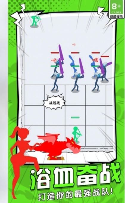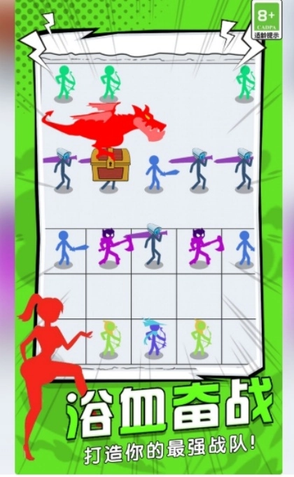 休闲智斗场安卓最新版是一款策略对战游戏,玩家通过排兵布阵开启烧脑对决,能召唤蓝剑士、绿弓手等不同类型的火柴人战士。在这款免费游戏里,玩家需依据战局与敌人特点做决策:是集中资源强化高输出的弓手,还是补充肉盾属性的剑士?不同选择会左右战斗走向。此外,放置两个相同士兵可触发合成,解锁新卡牌并提升士兵实力;玩家还能在战场网格中拖动调整士兵位置,让近战的蓝剑士冲锋在前承受伤害,远程的绿弓手在后方输出,以此构建稳固的攻防体系。