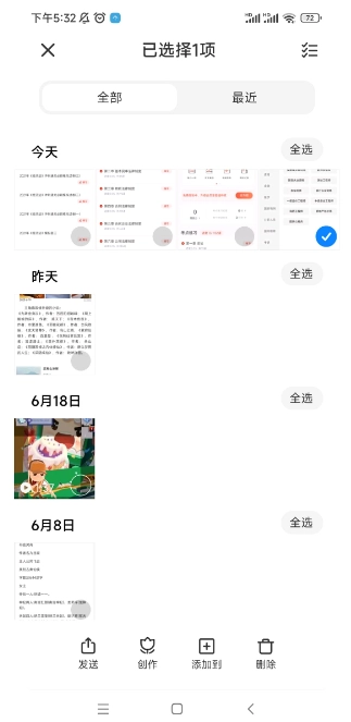 在手机上打开小米相册应用后,浏览并挑选需要加密的照片。