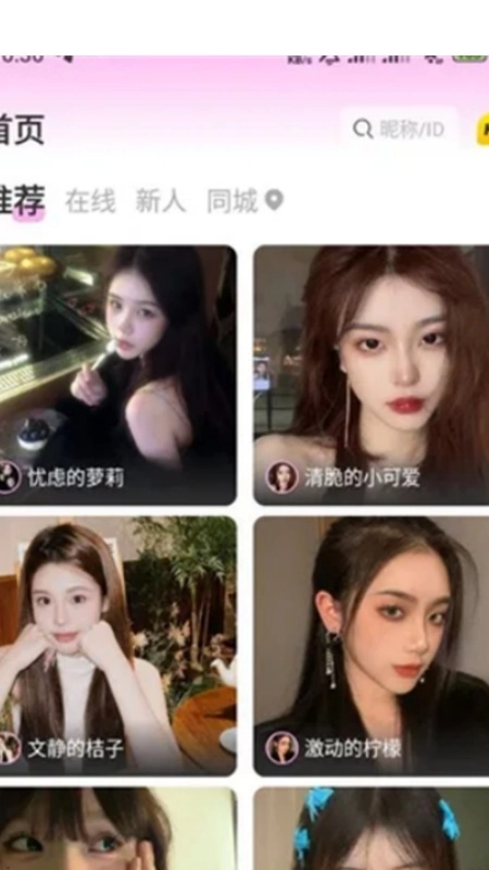 首页构建了多维标签体系,涵盖推荐、在线、新人、同城等分类标签,以此精准划分各类社交场景,全方位满足不同用户的交友需求。