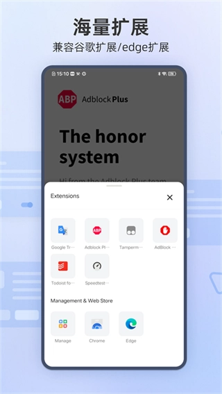 浏览器拥有丰富的扩展插件资源,用户可按需安装各类实用工具、安全防护等插件,以此提升浏览器的功能丰富度与安全防护能力。