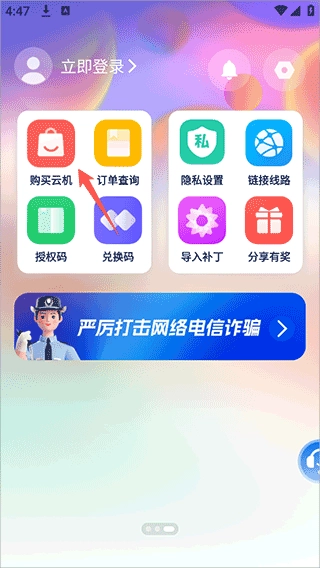 当您购买云手机后,若仍停留在云手机的封面页面,说明尚未进入云手机系统。此时,您只需点击页面上带有“指纹”标识的图标,就能正式进入云手机了。