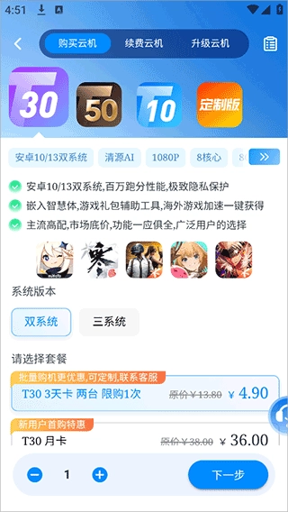 下单成功后就能获得一部虚拟手机,其价格区间在几块钱到三百块左右,用户在购买云手机的过程中可以查看具体价格。