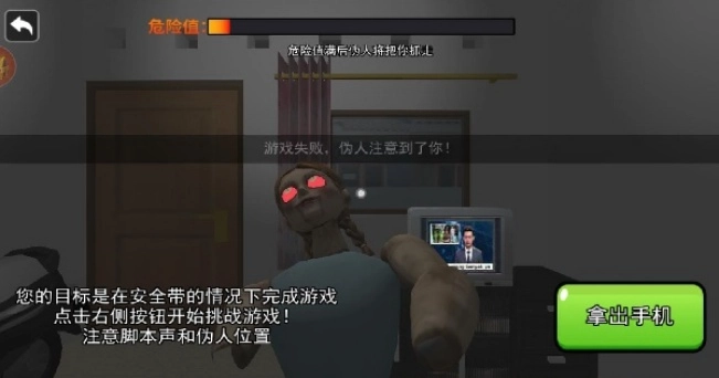 重新挑战时,你得仔细观察伪人妈妈的行走路线,再迅速把手机收起来。