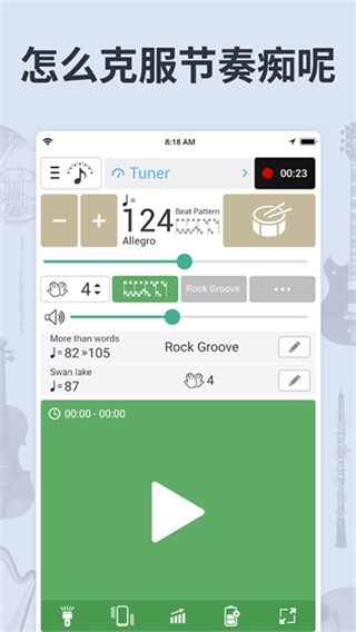调音器与节拍器集成了多种便捷实用的乐器辅助功能,用户可依据自身需求自由选择,助力提升弹奏效果,是一款功能全面、实用性强的手机音乐节奏辅助软件。