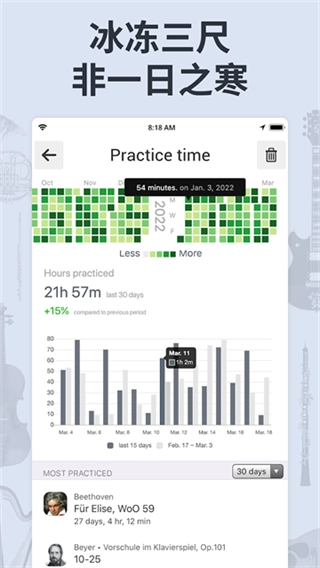 可实时追踪用户音乐练习的时长,让你及时掌握练习情况。