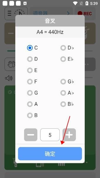 调音时,箭头朝左说明音偏低,箭头朝右说明音偏高,当箭头处于正中间且变为绿色时,就表明音完全准确。