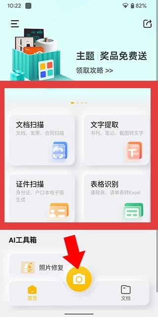 在本站完成安装后点击打开进入,功能分区清晰直观,文档扫描、文字提取等四大核心功能都在AI工具箱里,其中还藏着照片修复功能。底部的相机按钮使用起来非常便捷,点击它就能快速进入扫描模式。