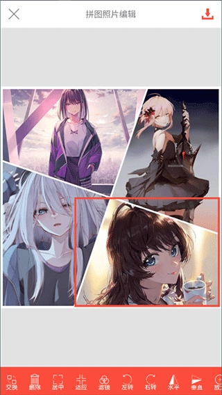 单独选中某一张图片后,还能对它进行调整位置(与其他图片交换)、添加滤镜、放大或缩小等操作。