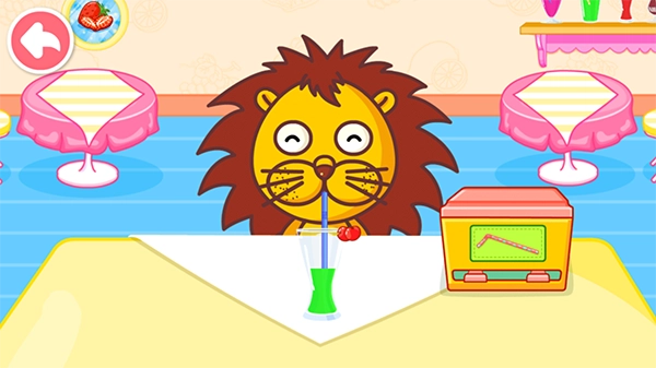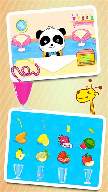 以果汁小店为例,顾客进店后,我们需要为其制作果汁,只要按照箭头指示的方向滑动操作,就能完成一杯果汁的制作。