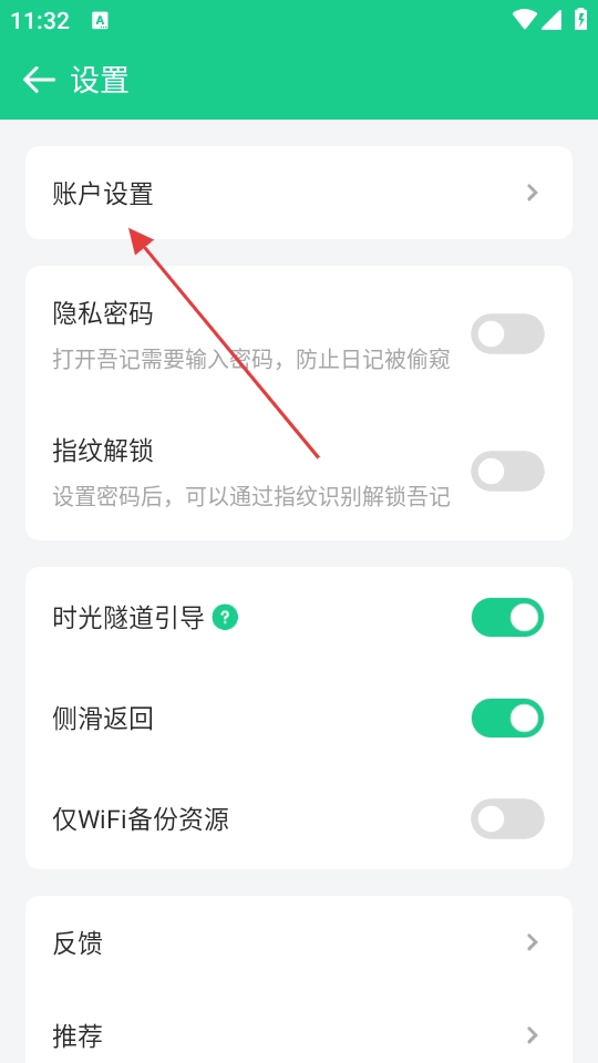 进入设置页面后,找到并点击【账户设置】这一选项,即可进入对应的账户设置页面。