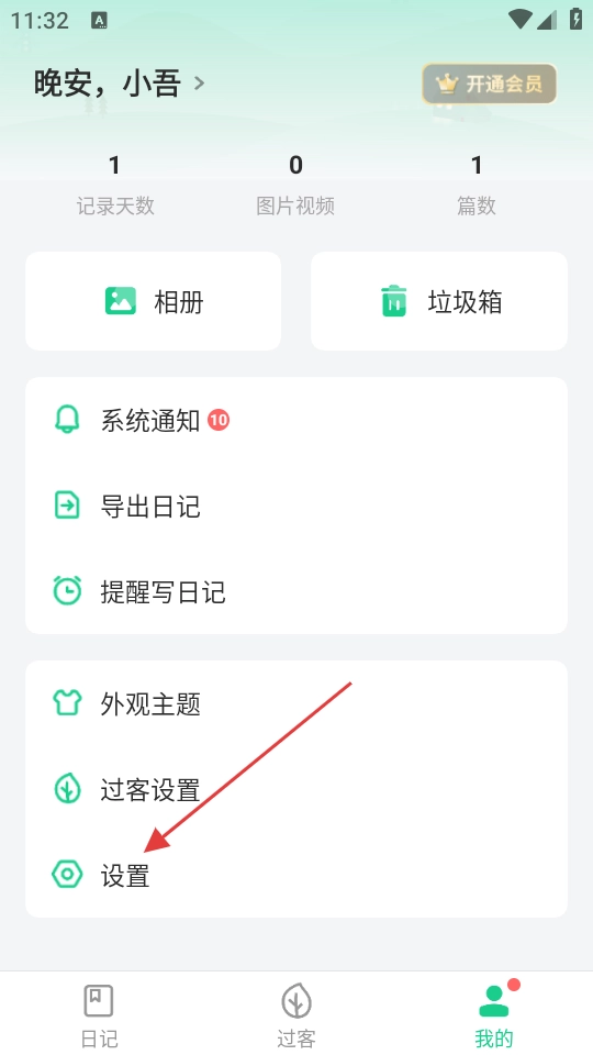 在个人中心页面,找到并点击【设置】选项,即可进入设置页面。