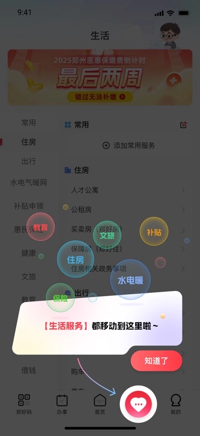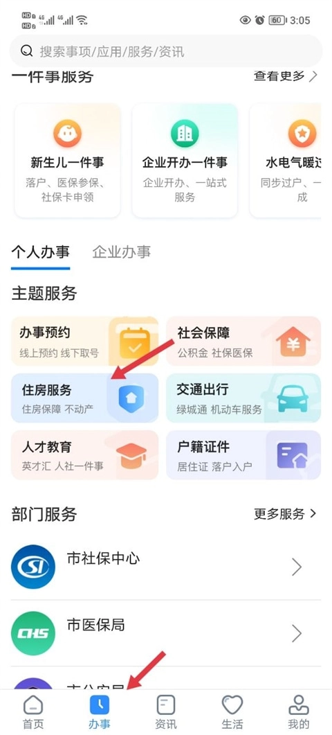 进入到软件之后在办事栏中点击住房服务。