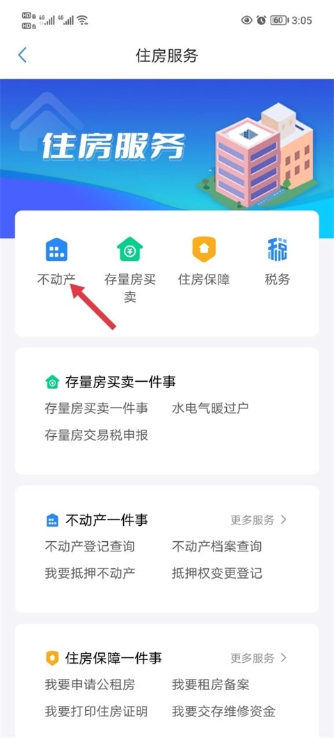 然后点击不动产功能。