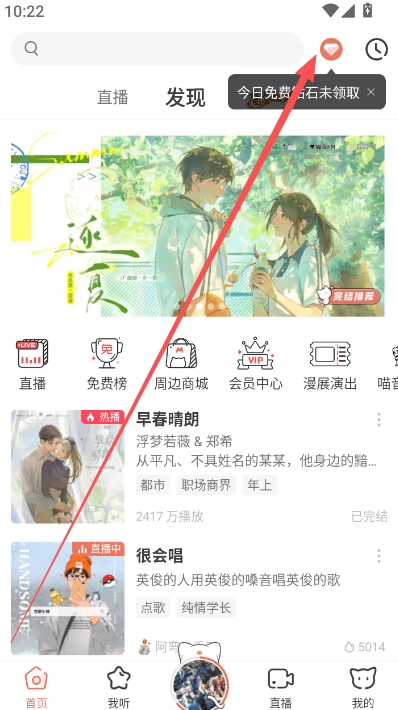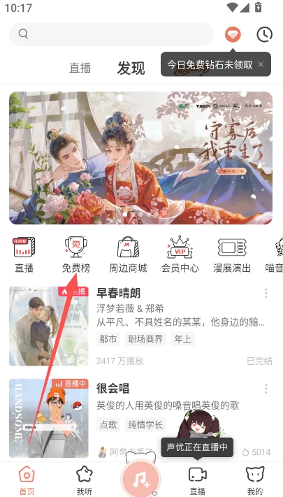 m站的钻石主要是用来收听会员广播的fm片段的,领取的方法在首页的右上方。