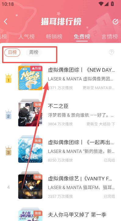 你可以通过日榜或者周榜的形式,找到并打开你想收听的广播剧内容。