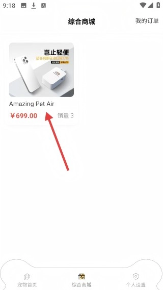 在综合商城里点击【AmazingPetAir】商品,就能进入产品详情页。