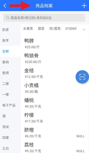 点击商品档案进入详情页后,既能按分类浏览商品列表,也可以通过搜索栏快速查询商品的信息与价格。