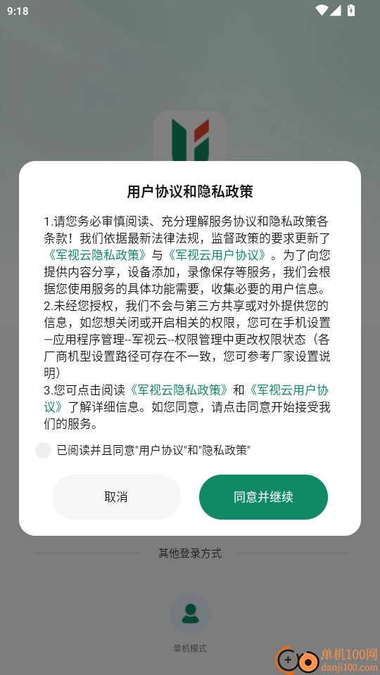 打开“用户协议和隐私政策”软件,点击“同意并继续”按钮进入