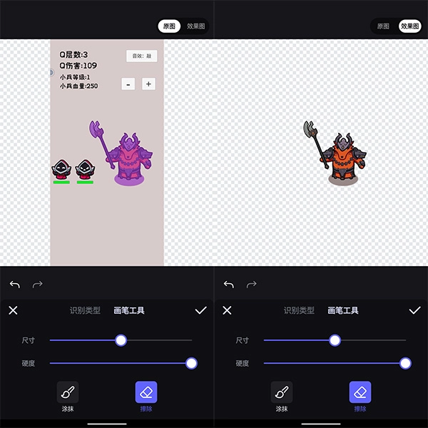可以在涂抹和擦除两种模式里选择一种,用手指滑动屏幕来精准处理目标区域,以此进一步优化抠图的边缘细节,或者把多余的元素去除掉。