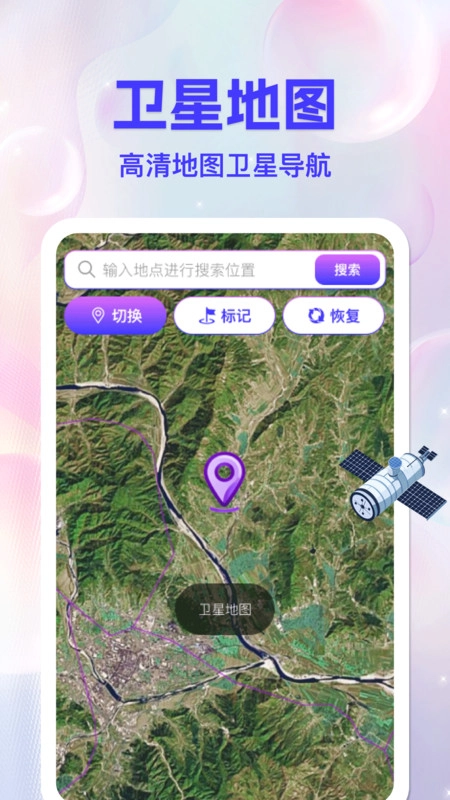 普通地图与卫星地图可一键切换,普通地图便于查看道路名称,卫星地图则能直观呈现周边地形地貌。