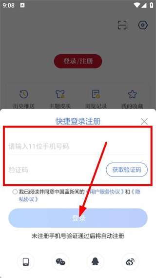 在输入手机号与验证码后,勾选相关协议,接着点击登录按钮,即可完成登录流程。