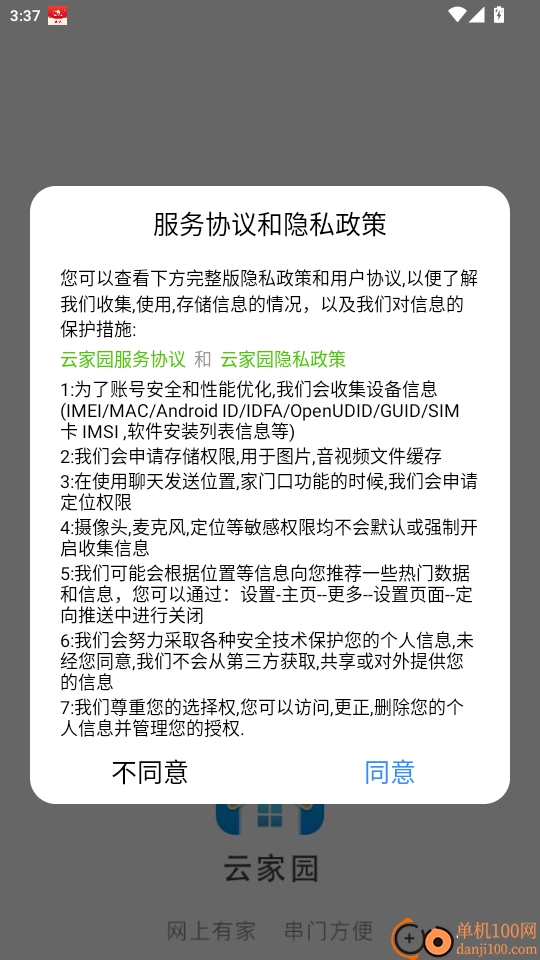 打开软件后阅读“服务协议和隐私政策”,点击“同意”按钮即可进入。