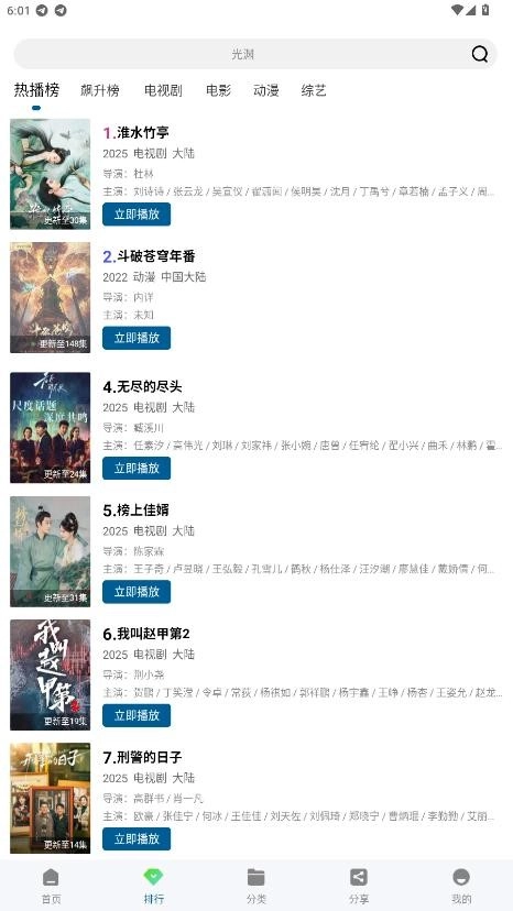 进入“排行”页面,就能看到热播榜、飙升榜、热搜榜等各类榜单的内容。