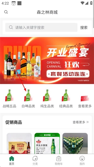 在森之林商城的首页找到白啤品类选项并点击,即可进入白啤商品的列表页面。